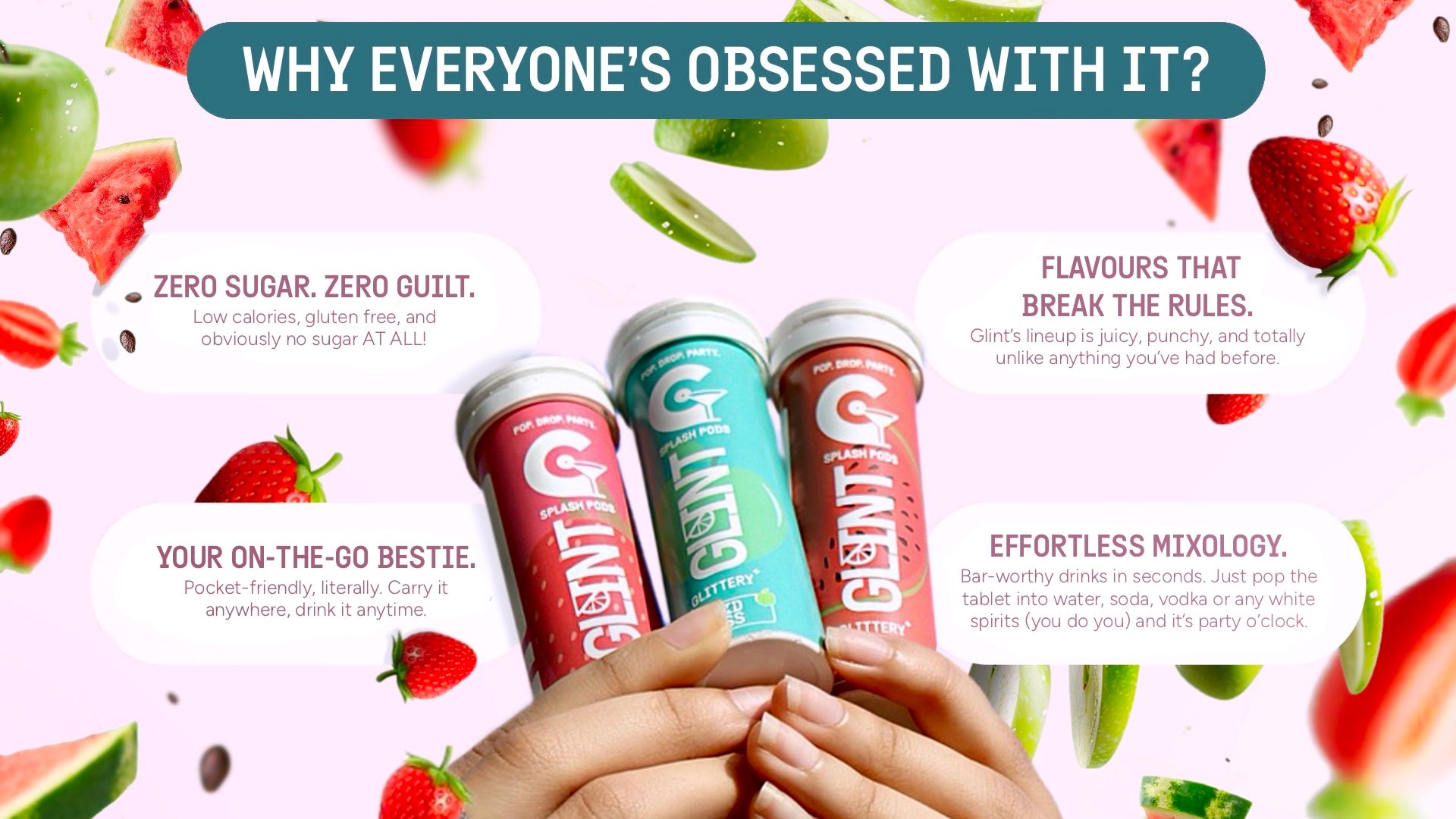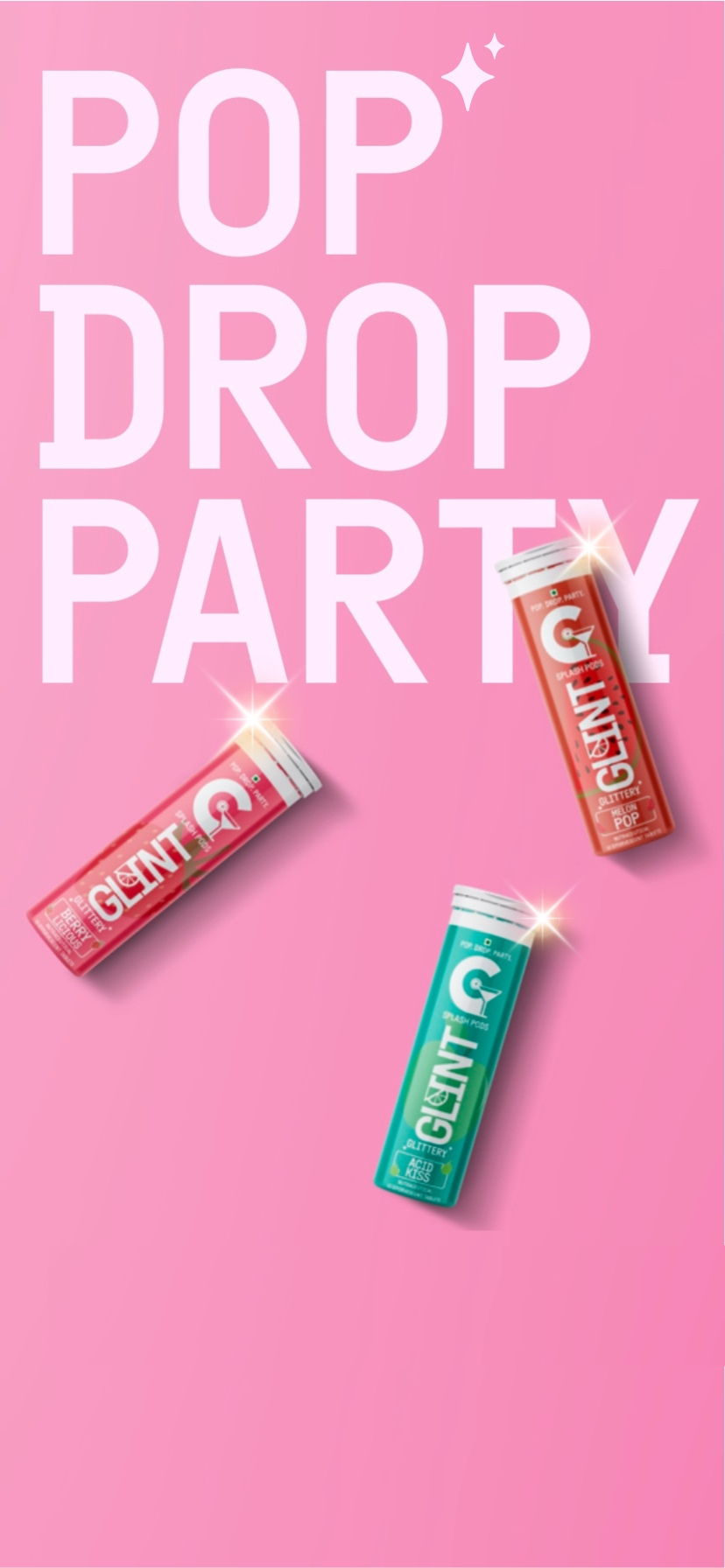 Our Ultimate Pop Party Pack Acid Kiss, Berrylicious, & Melon Pop ALL IN ONE pack - 10 zero-sugar, high-fizz tablets each, so you can pop, drop & party anytime, anywhere.