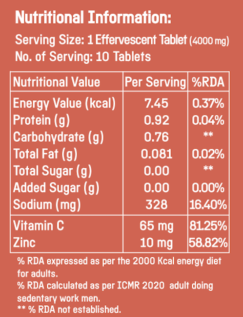- L-ascorbic acid, Zinc sulphate